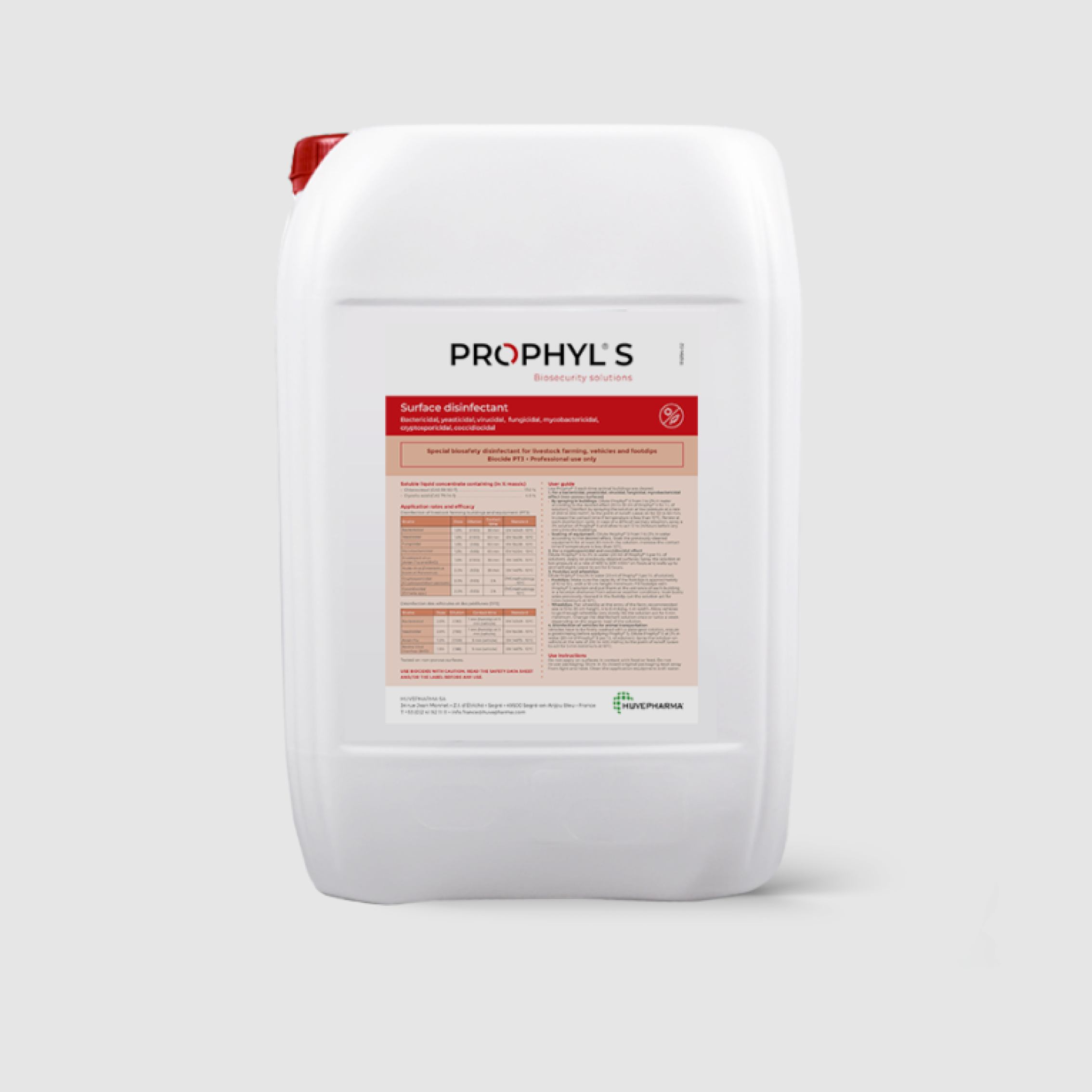 PROPHYL S to skuteczny preparat dezynfekujący, stworzony z myślą o poprawie bioasekuracji w gospodarstwach hodowlanych – szczególnie tam, gdzie istnieje wysokie ryzyko zdrowotne. Idealny do dezynfekcji pomieszczeń, urządzeń, powierzchni, pojazdów i wyposażenia w hodowlach zwierząt. PROPHYL S – szerokie spektrum dezynfekcji.